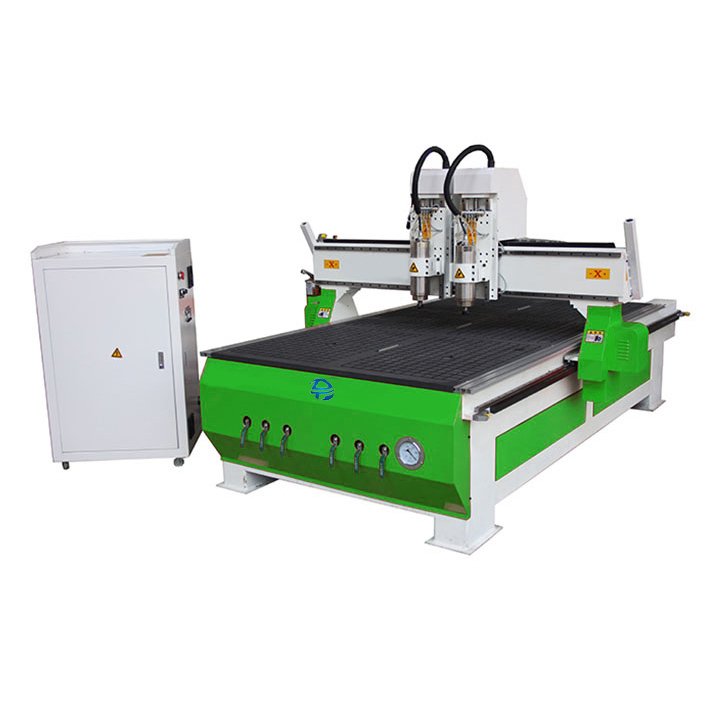1. This machine have 2 spindles and can work at same time and can finish two work pieces one-time processing. Mainly suit for plat engraving such as cabinet door, screen, hollow decoration etc.